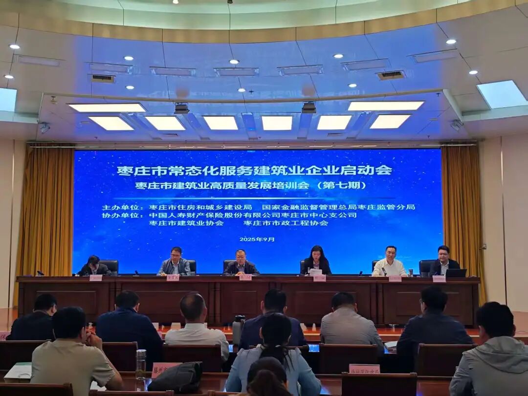 為進一步貫徹落實全省建筑業發展工作會議精神,持續推進服務建筑業企業工作常態化、制度化。9月29日,我市舉辦了棗莊市常態化服務建筑業企業啟動會暨第七期建筑業高質量發展培訓會。本次會議由金沙js333中國線路、國家金融監督管理總局棗莊監管分局聯合主辦,中國人壽財產保險股份有限公司棗莊市中心支公司、棗莊市建筑業協會、棗莊市市政工程協會聯合協辦。棗莊金融監管分局黨委委員、副局長陳璇,市住房建設事業發展中心副主任張偉,國壽財險棗莊中支副總經理、黨委委員史貴文出席會議。